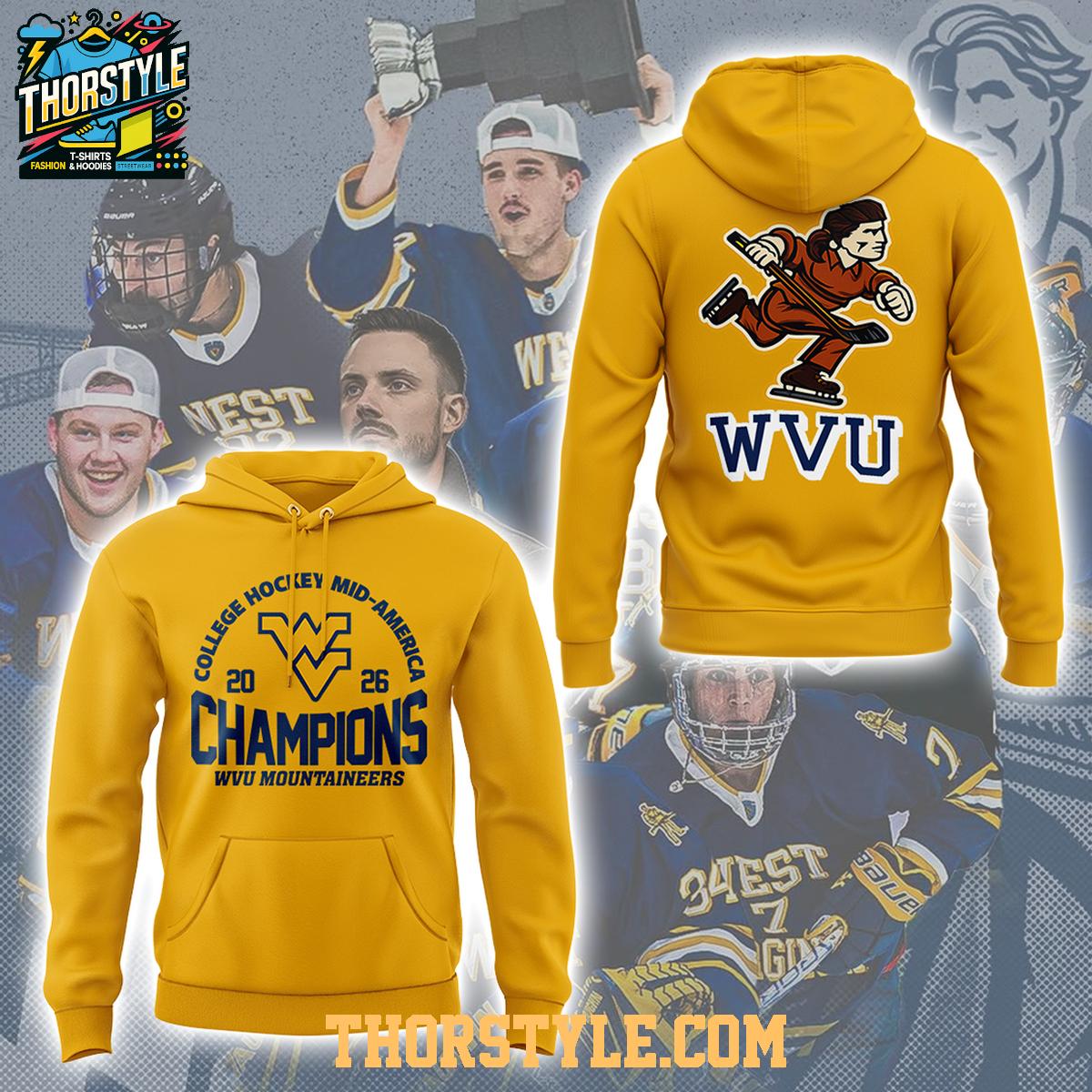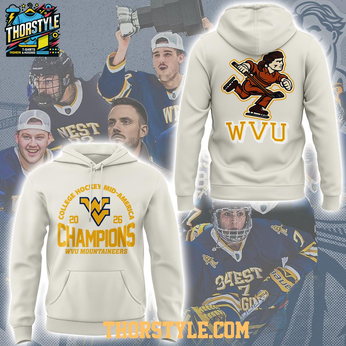 West Virginia Mountaineers 2026 College Hockey Mid-America Champions Hoodie