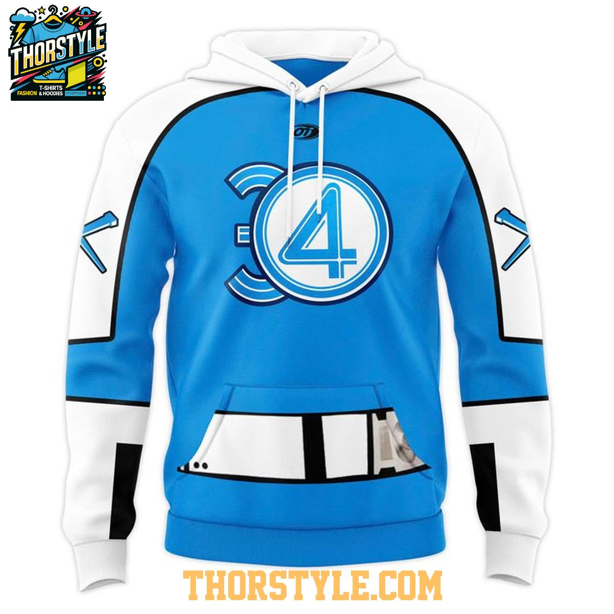 This special edition hoodie t-shirt boasts a dynamic design that seamlessly integrates elements from both the Wheeling Nailers and Marvel's iconic Fantastic Four. The front prominently displays team graphics, ensuring your Nailers allegiance is clear, while the hoodie itself incorporates subtle design cues reminiscent of classic superhero costumes. A carefully chosen color scheme harmonizes these elements, resulting in a visually striking garment that is sure to capture attention.