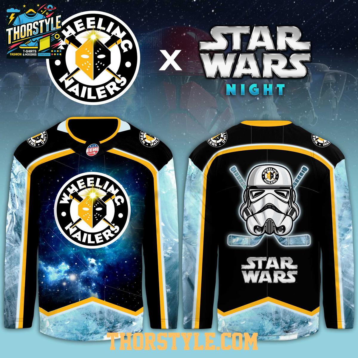 Prepare for an intergalactic fusion of ice hockey and the Star Wars universe with the Wheeling Nailers Star Wars Night 2026 Stormtrooper Hockey Jersey. This special edition collectible commemorates a memorable Star Wars night celebrating the Wheeling Nailers, offering a unique blend of sporting spirit and galactic iconography that is sure to resonate with fans of both franchises.