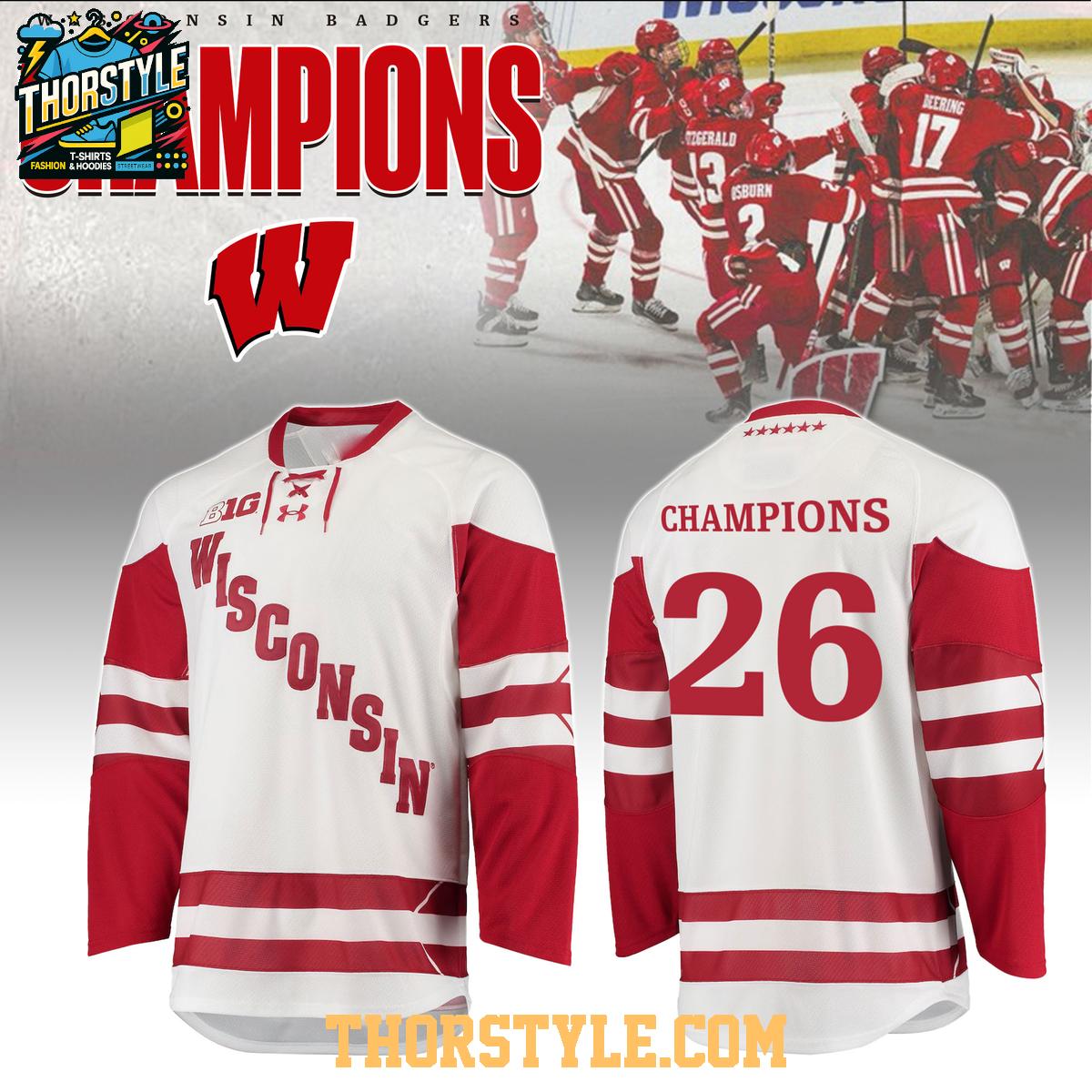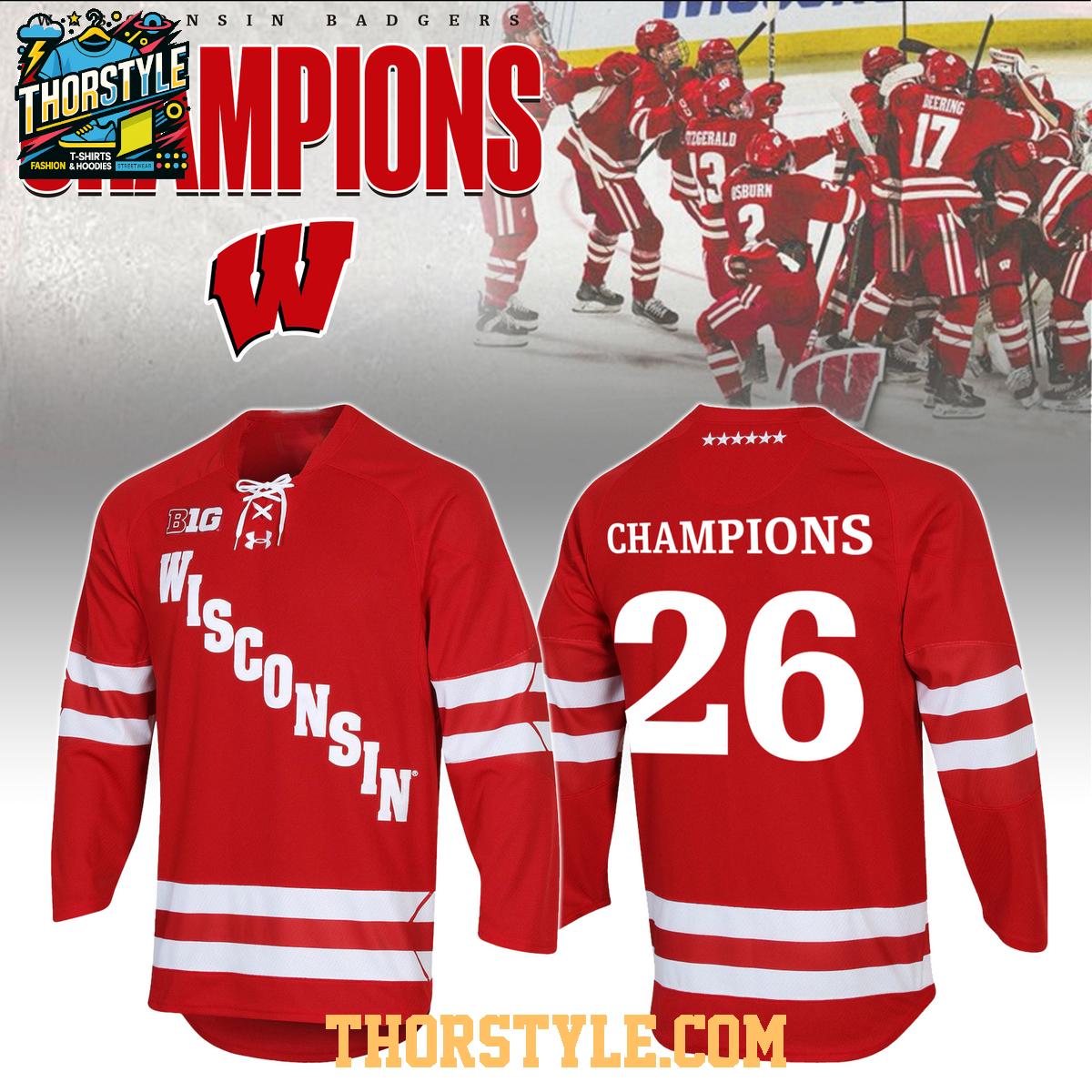 Wisconsin Badgers NCAA National Champions 2026 Personalized Hockey Jersey,