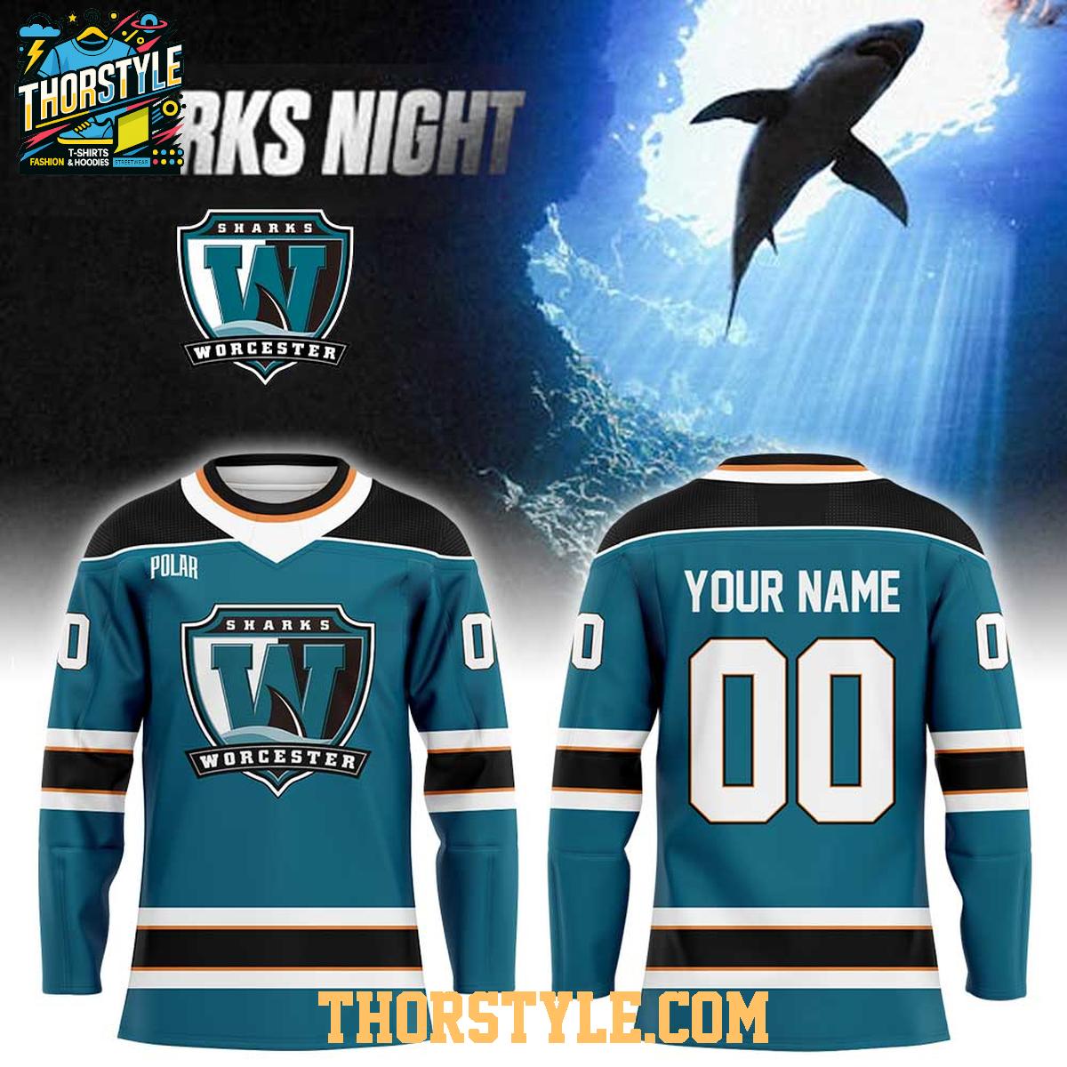 Worcester Railers HC 2026 Worcester Sharks Night Personalized Hockey Jersey,