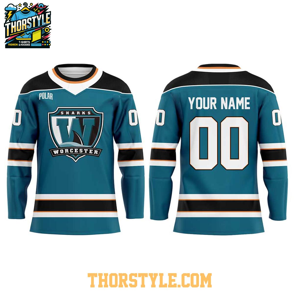 Be the first to review “Worcester Railers HC 2026 Worcester Sharks Night Personalized Hockey Jersey” Cancel reply